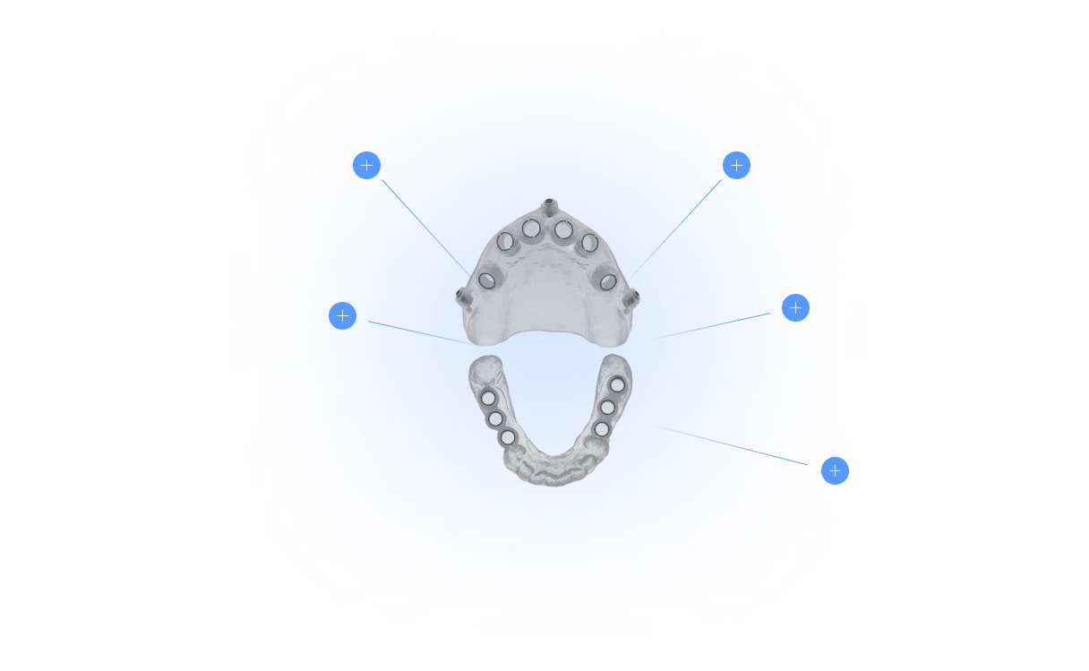 В расчётной части на основе компьютерной томограммы и внутриротового сканирования создаётся трёхмерная виртуальная модель ротовой полости и зубных рядов пациента с учётом всех его анатомических особенностей. С помощью программы на модели производится расстановка имплантов, учитывающая позицию, угол наклона и заглубление. Таким образом, ещё до проведения операции, врачи и пациент видят результат.